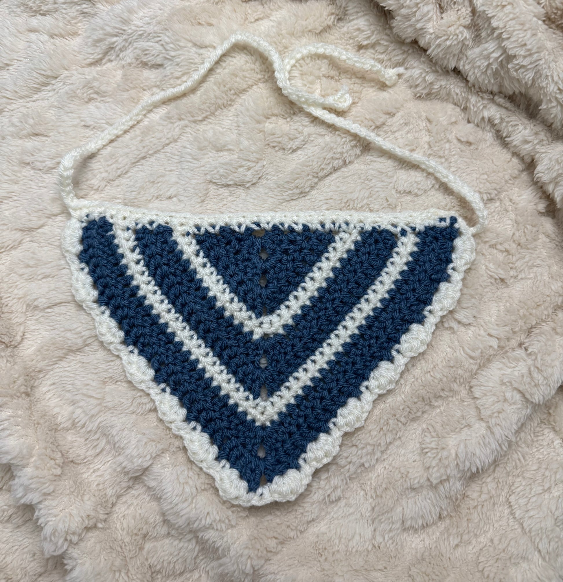 Add a splash of charm to any outfit with this playful Crochet Bandana in cheerful blue and white. Its soft, breathable texture keeps you comfy while the classic crochet pattern brings a touch of handmade whimsy. Perfect for brightening up your look or adding a fun twist to a casual day out!